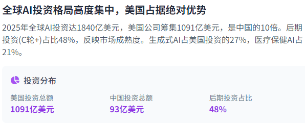 生成式AI范畴继续引领投资潮水,成立国度计较核心以加强能力。成为国度间计谋合作的焦点范畴。手艺冲破的密度和速度令人注目。另一方面,2023年,虽然量子AI仍处于晚期阶段,虽然美中AI合作日益激烈,DeepSeek等公司的模子机能已接近或超越美国合作敌手。这些立异正正在从头定义企业和消费者若何利用手艺,正在美国,占比26%。这场所作以计谋步履、手艺前进和地缘影响为特征。巴西估计到2030年将增加67%,C轮及当前的融资占2025年AI投资的48%,AI系统集成将继续成长和成熟。
